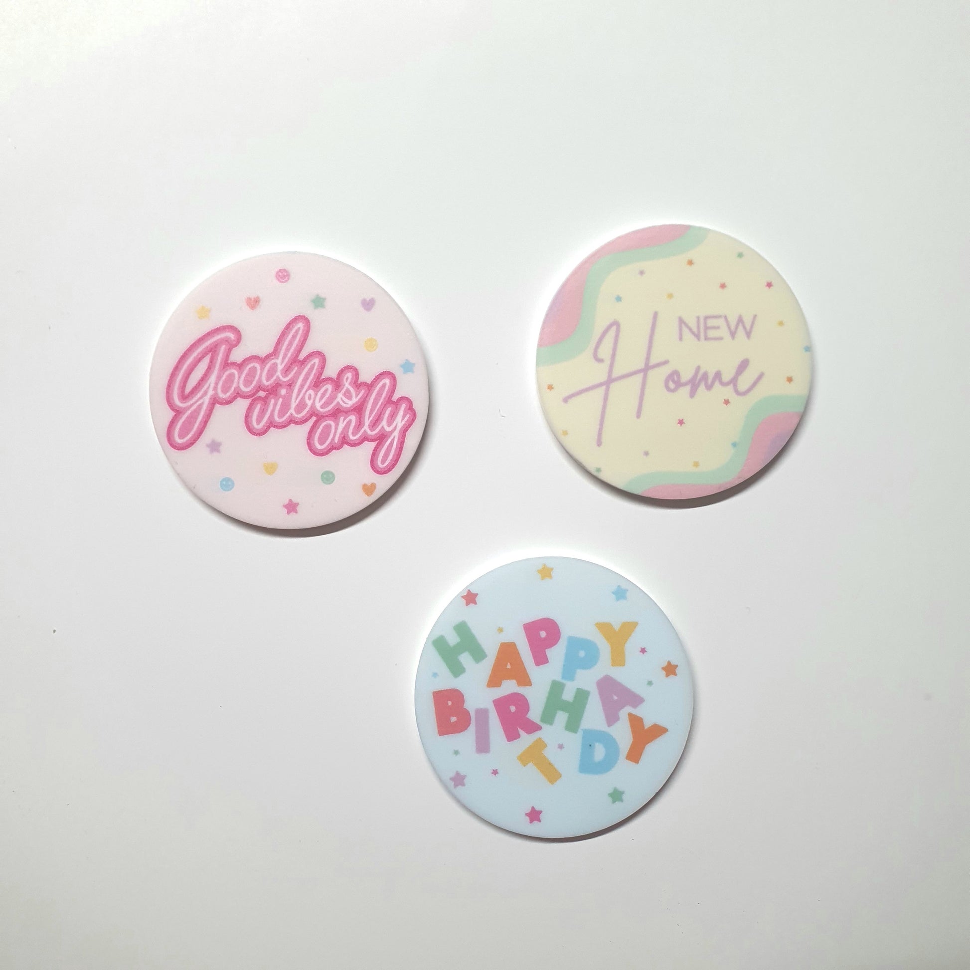 All designs are UV printed onto the matt shapes of your choosing. If you aren't sending your own design and wish to see a proof design of the item before printing, please note that with your order.