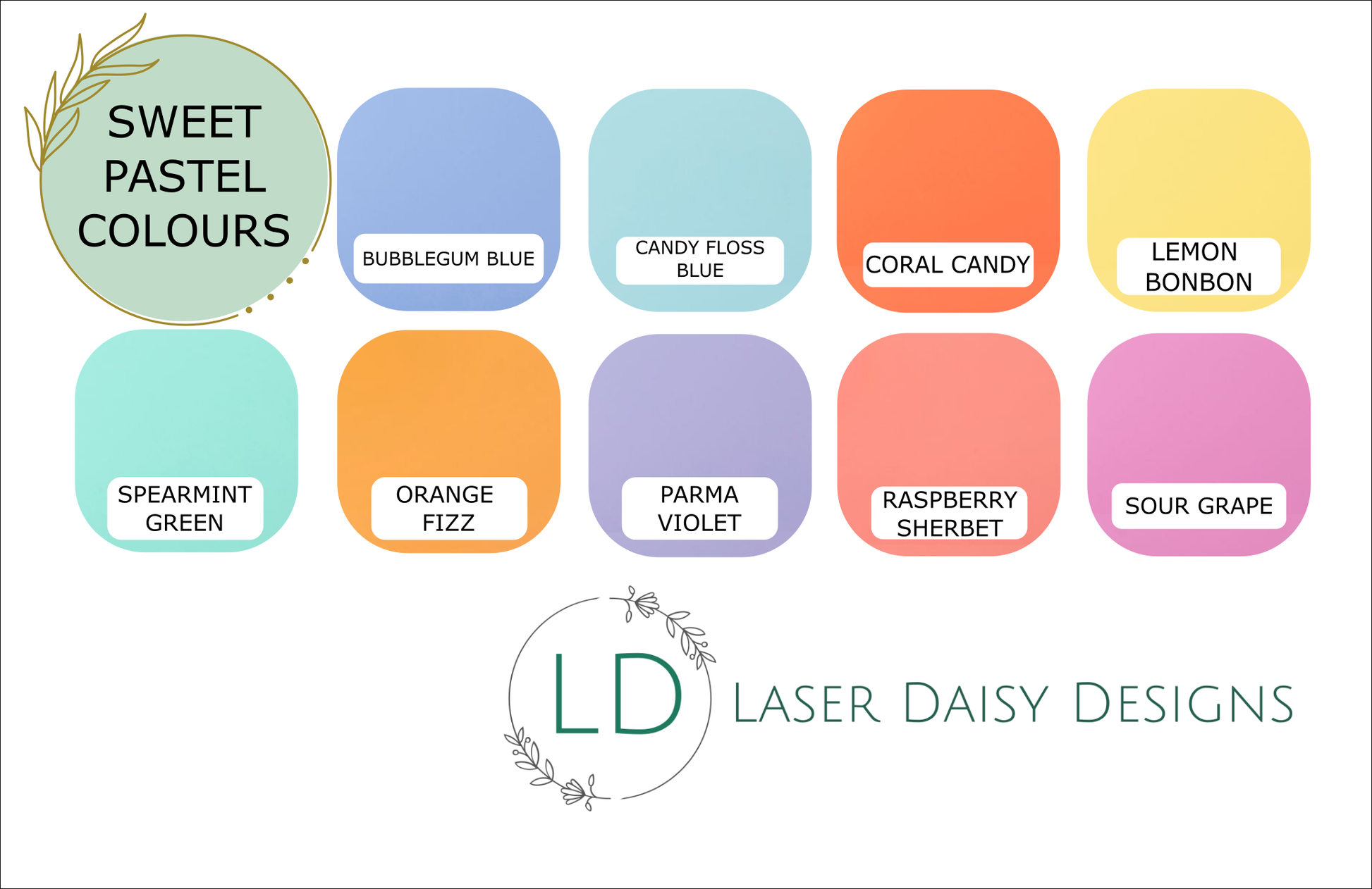 You will need to let me know the colour you would like from the available options in the photo section, you can mix colours if you're buying a set i.e. 50x purchased you can request 25 spearmint and 25 lemon, using the box provided.