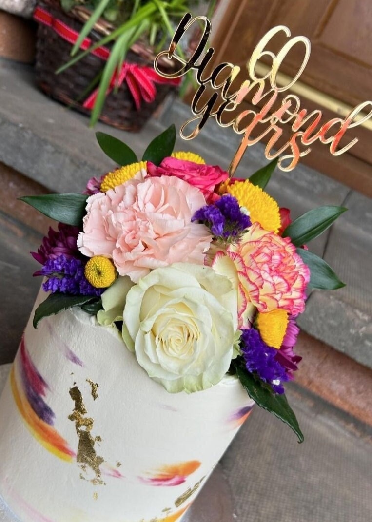 Acrylic 60 Diamond Years Cake Topper or Charm. Various Fonts, Colours & Sizes