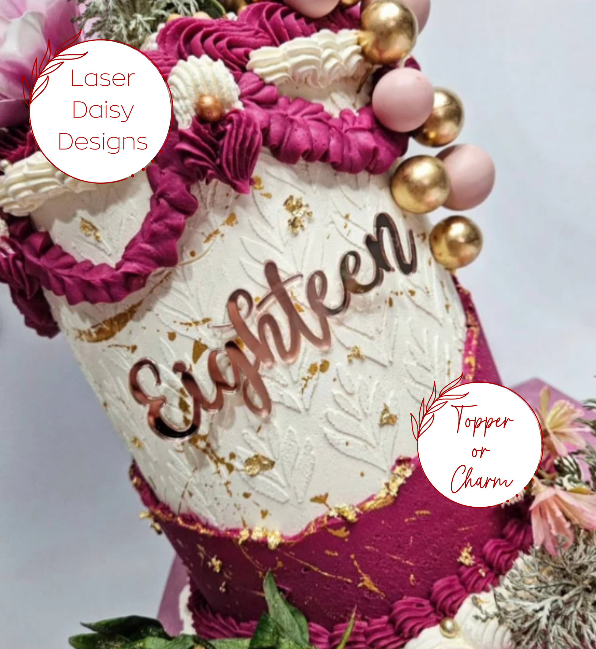 Acrylic 'Eighteen' Cake Topper or Charm. Various Fonts, Colours & Sizes
