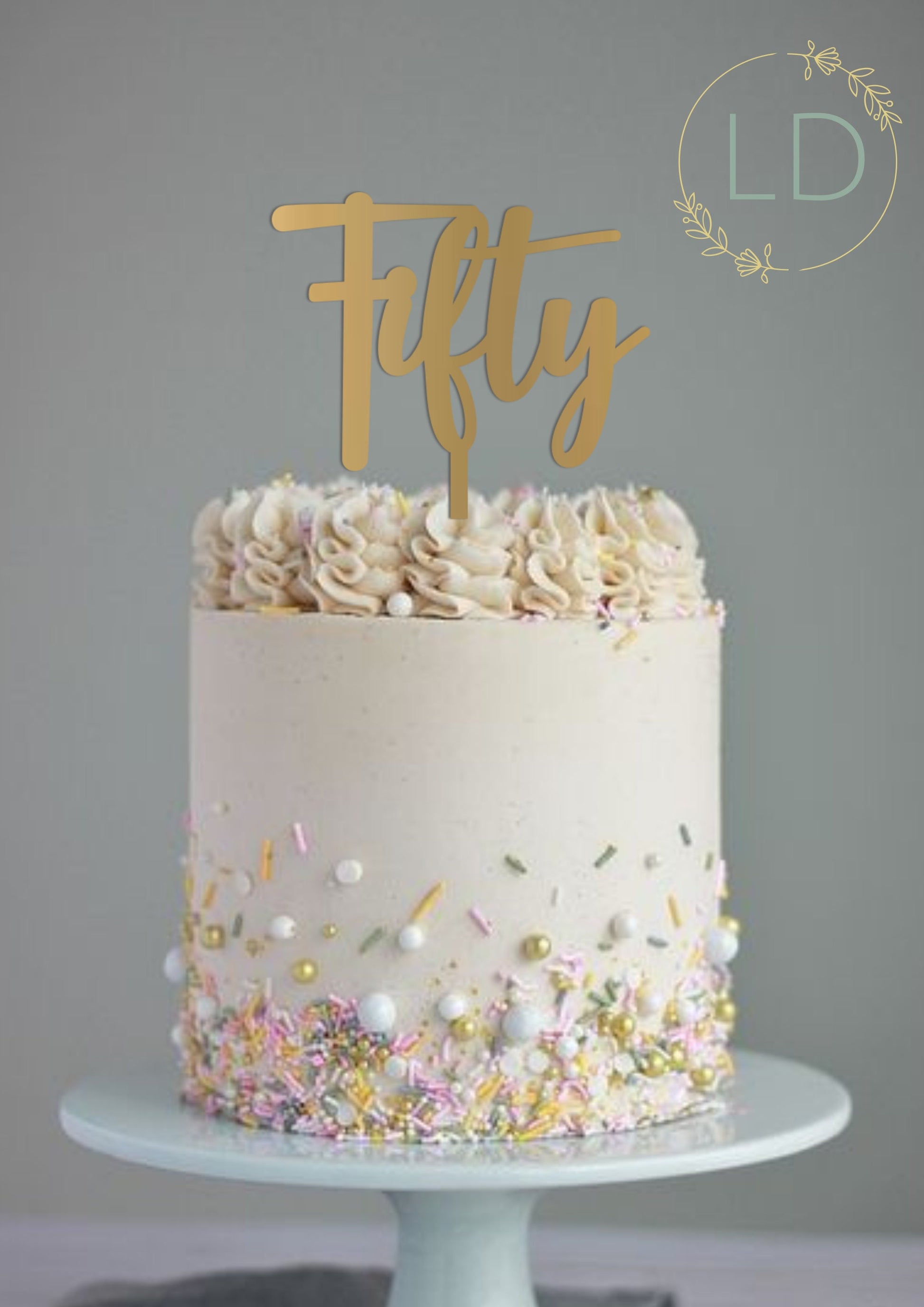 Fifty Cake Topper or Charm acrylic keepsake. Not made from card.