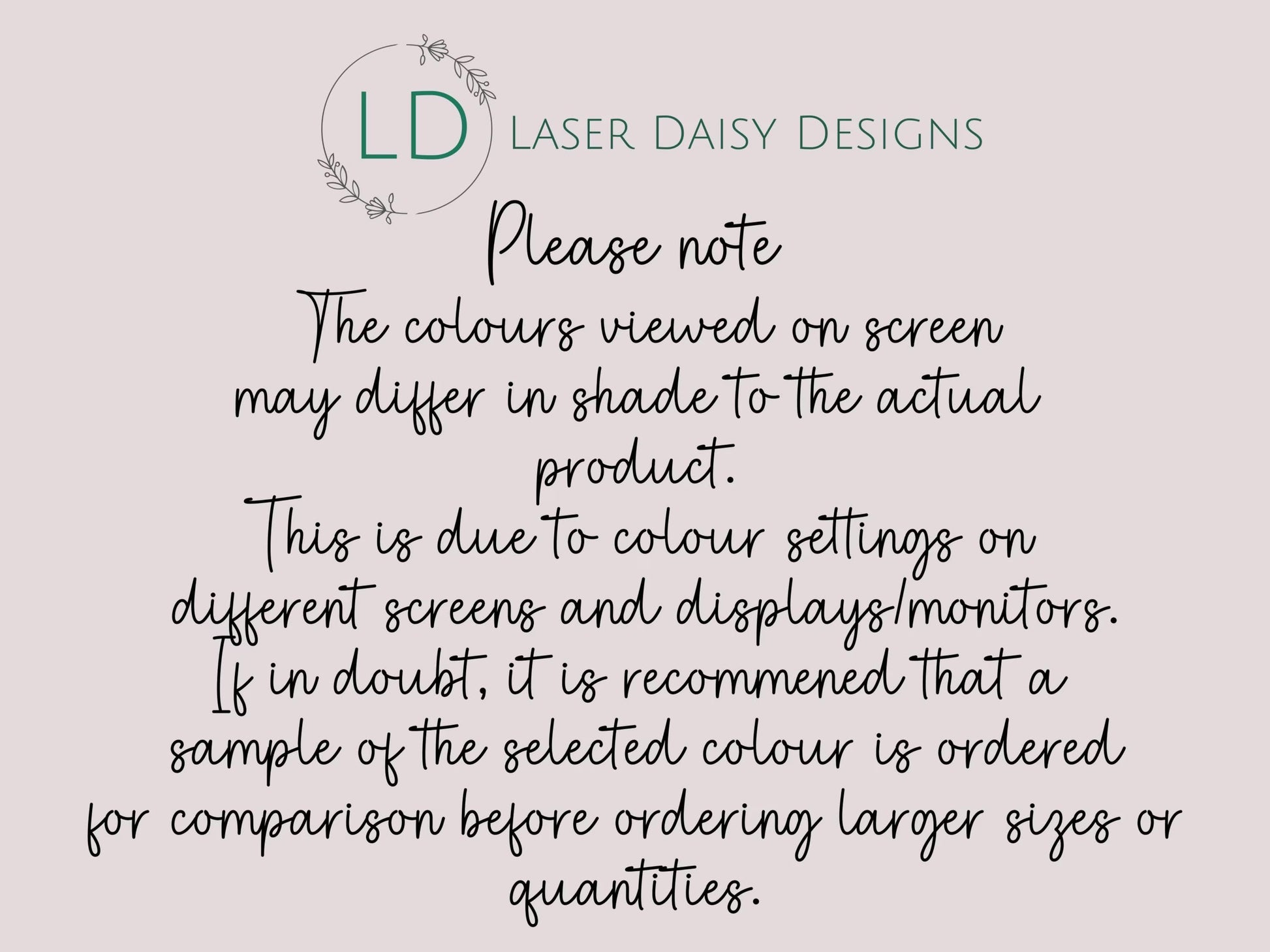 Available in various fonts, colours and sizes.