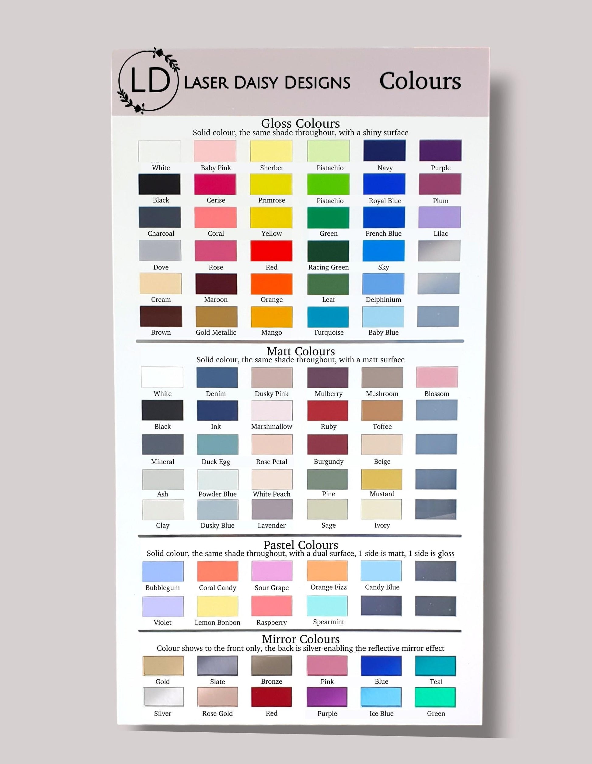All acrylic shapes are cut using 3mm depth acrylic & will come with the protective film on both sides (except the mirror, film on one side only) to prevent scratching during transit, which will need to be removed before use.