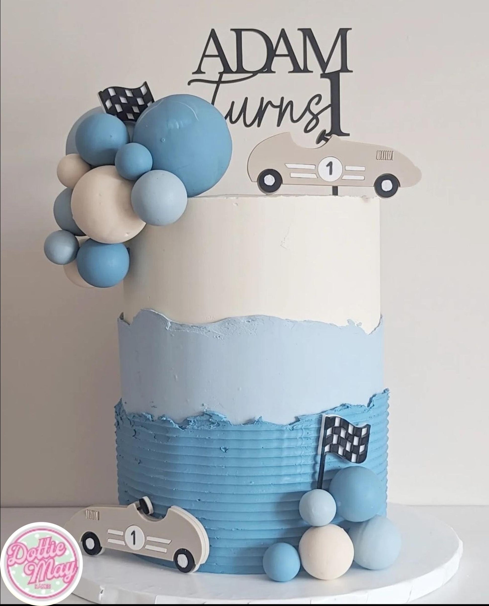 Acrylic Racing Car theme cake topper/charm set. Personalised Birthday Celebration Cake Decor