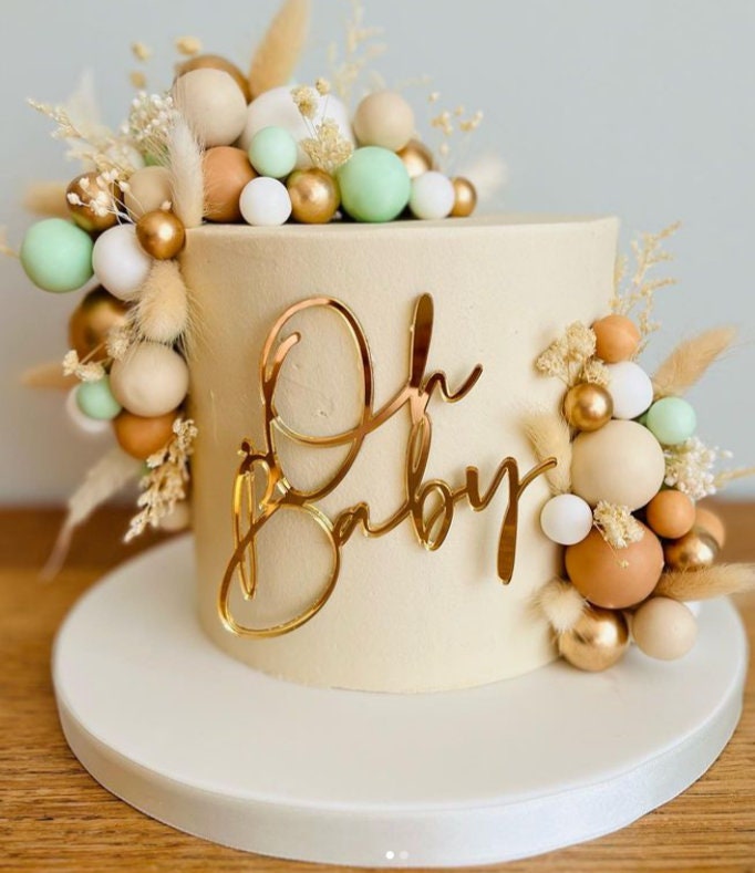 Acrylic Oh Baby cake topper or charm, personalised keepsake. Not made from card.