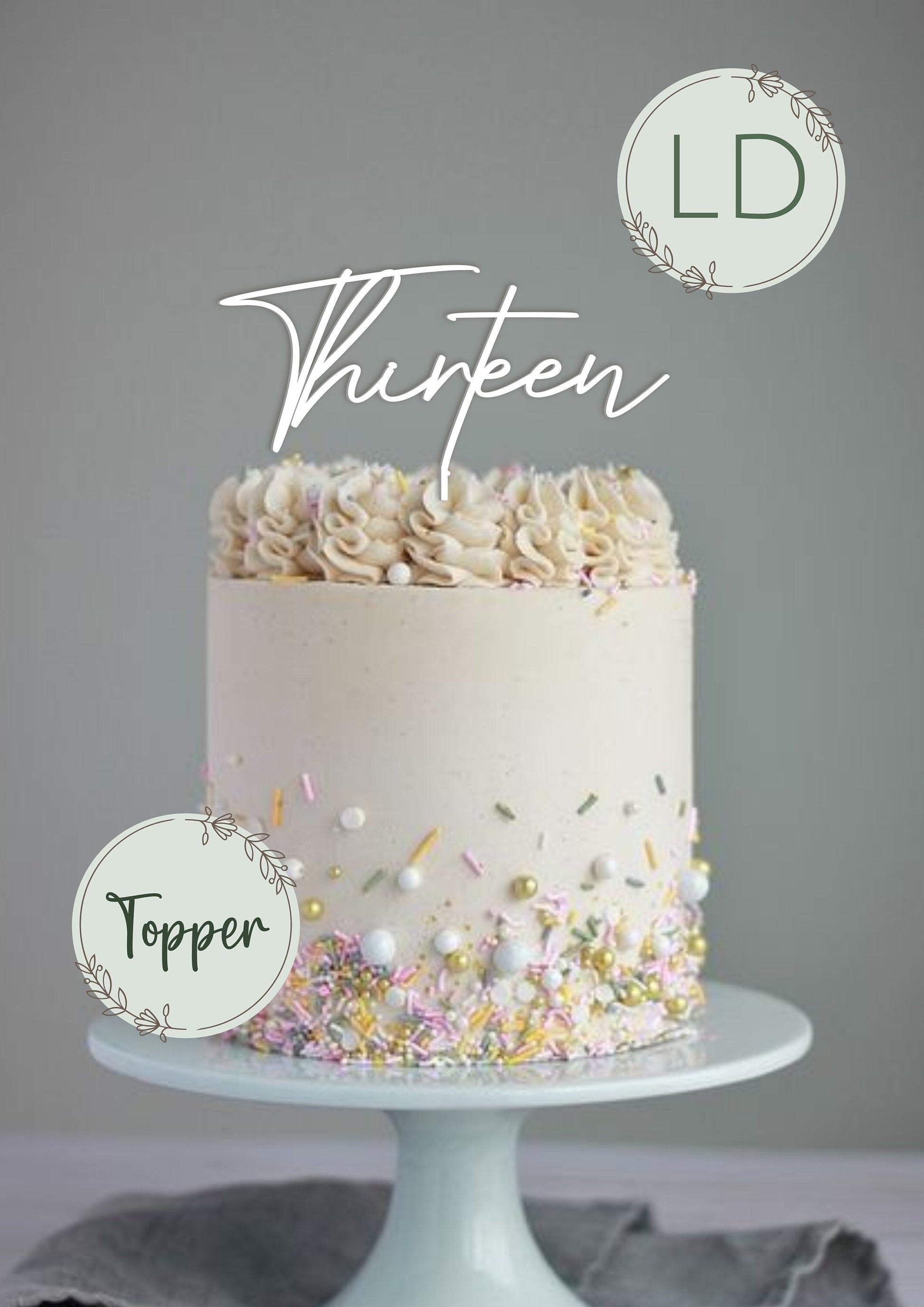 Thirteen Cake Topper or Charm acrylic keepsake. Not made from card.
