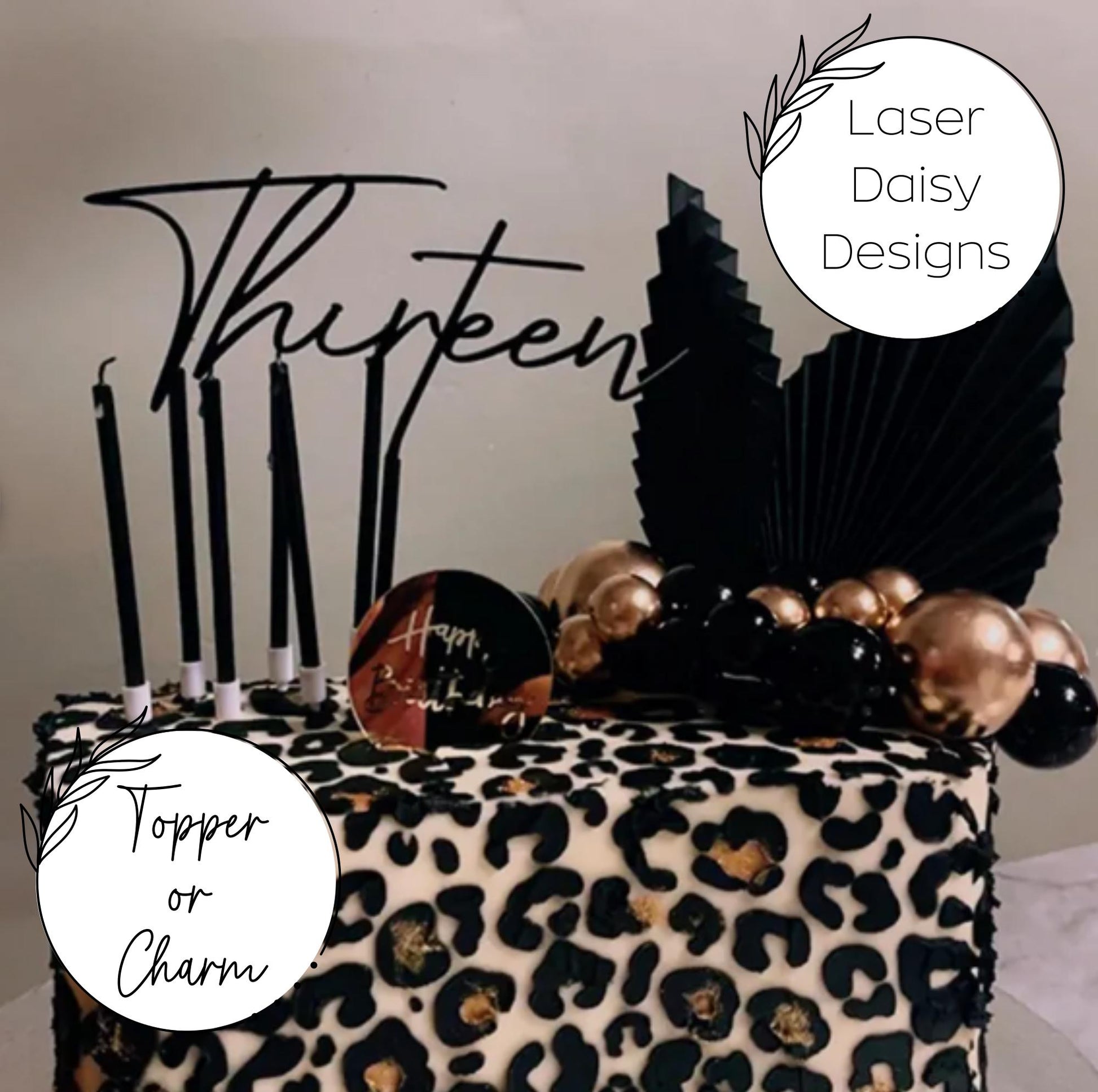 Acrylic 'Thirteen' Cake Topper or Charm. Various Fonts, Colours & Sizes