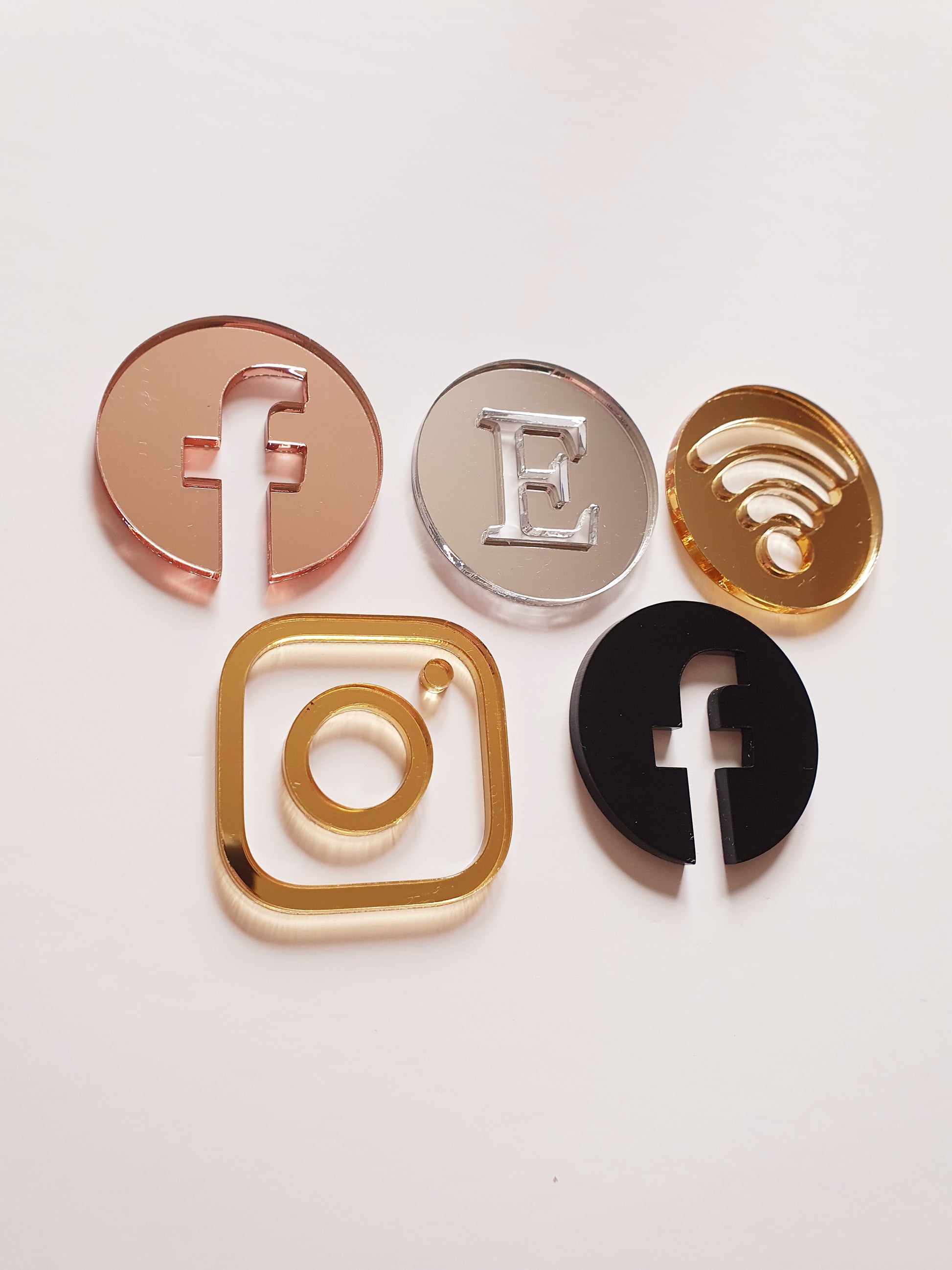 Social Media Symbols Icons/Logo's. Various Colours & Sizes. 3mm Depth Acrylic
