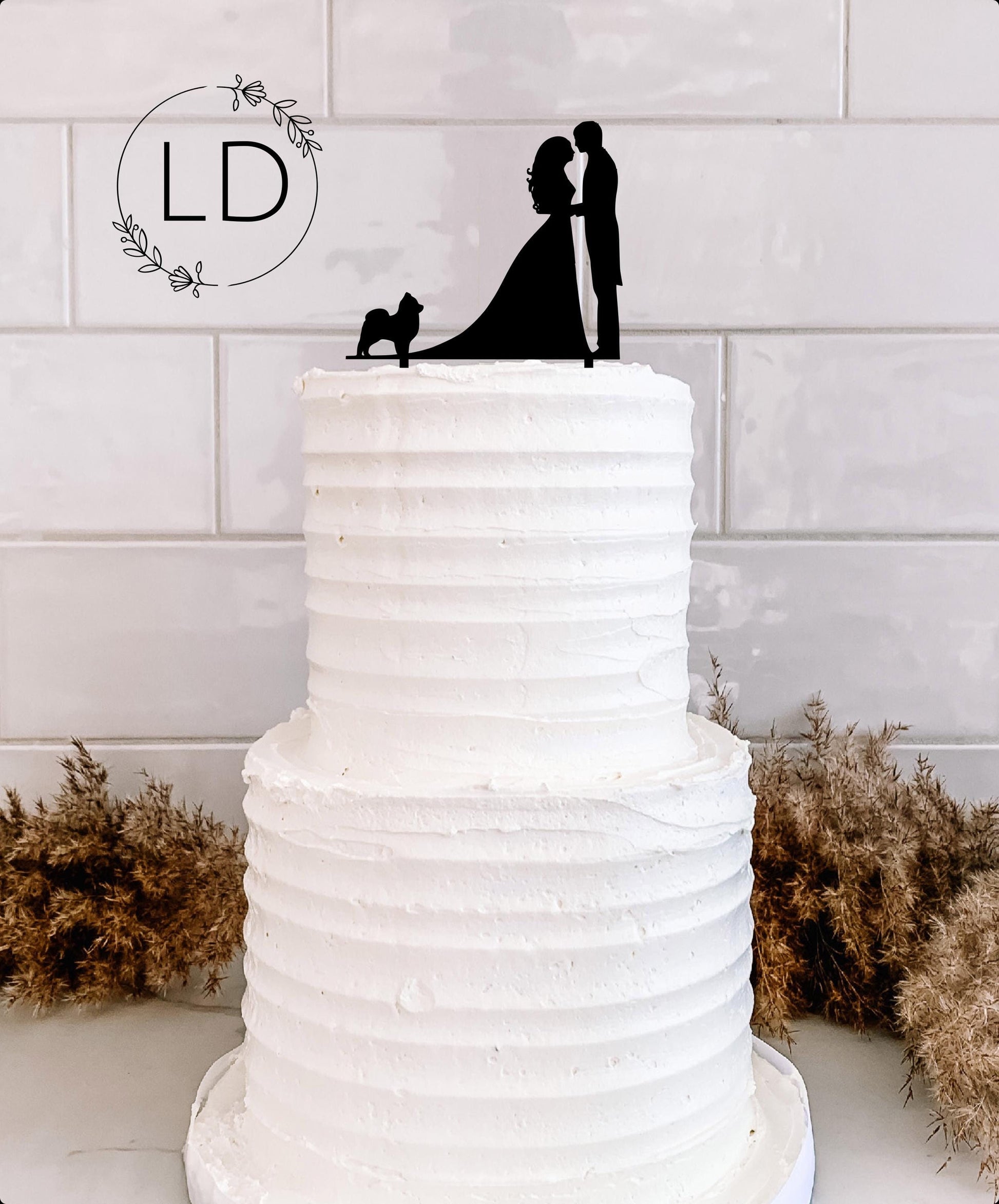 Bride, Groom & Pet Silhouette Cake Topper or Charm. Not made from card, keepsake.