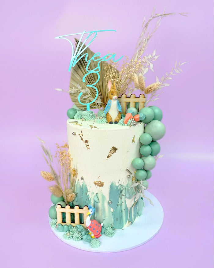 Bunny Rabbit Theme 'Name & 'age' Charm/Topper. With optional charms/ printed acrylic set.