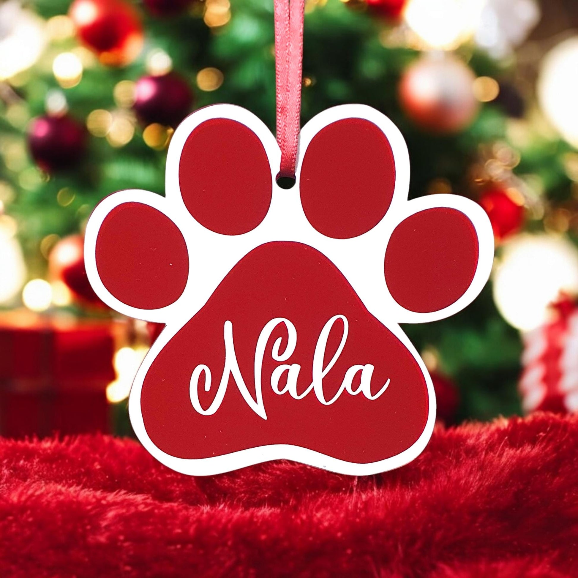 Dog Pet Paw Print Christmas baubles, Personalised printed acrylic ornament optional gift box