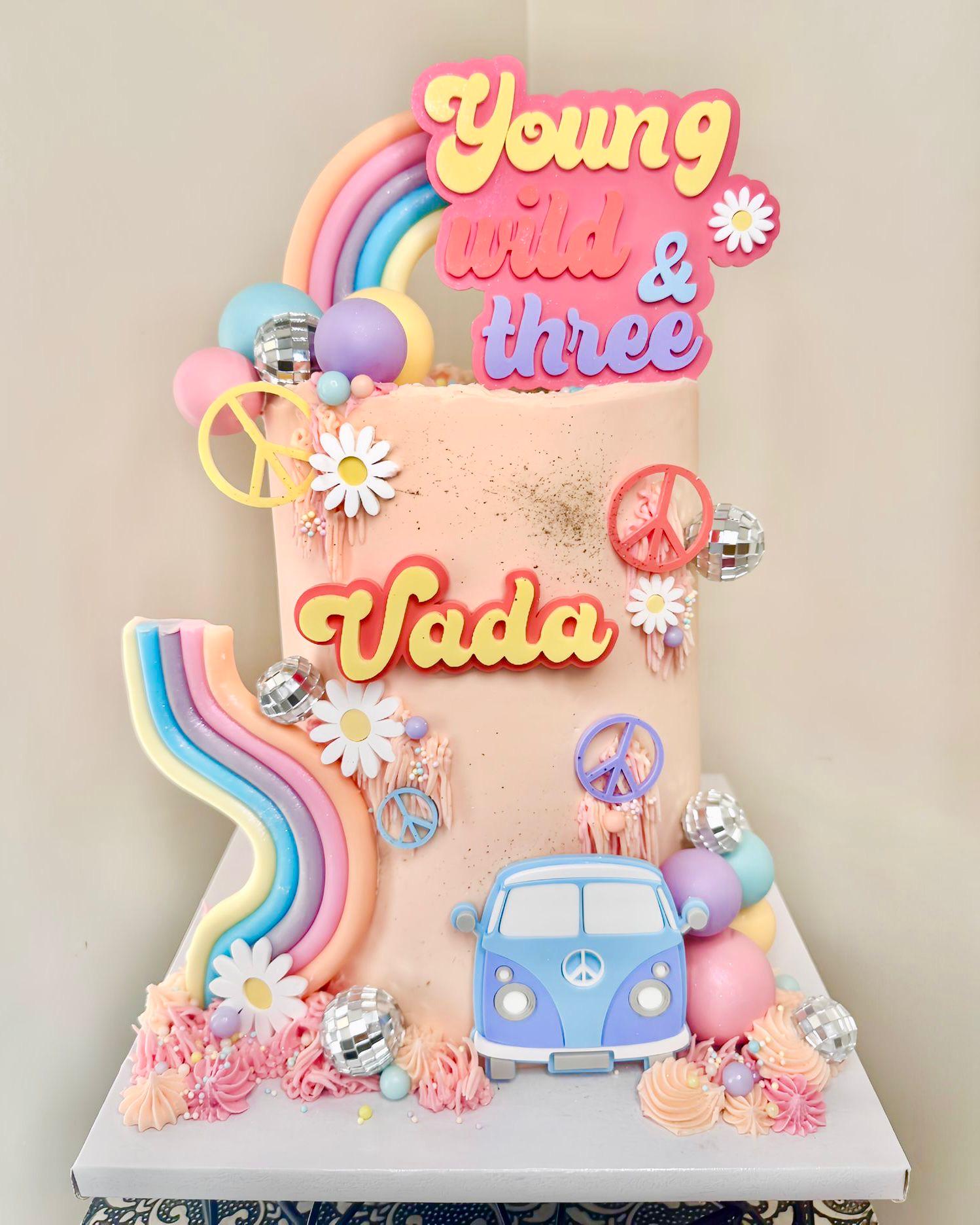 Young Wild & Three Campervan Groovy Themed Charm/Topper Set. Various Size & Colour Options.